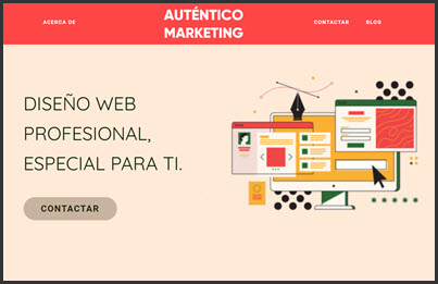 - Hasta 5 secciones: Inicio, Acerca de, Servicios, Blog, Contacto